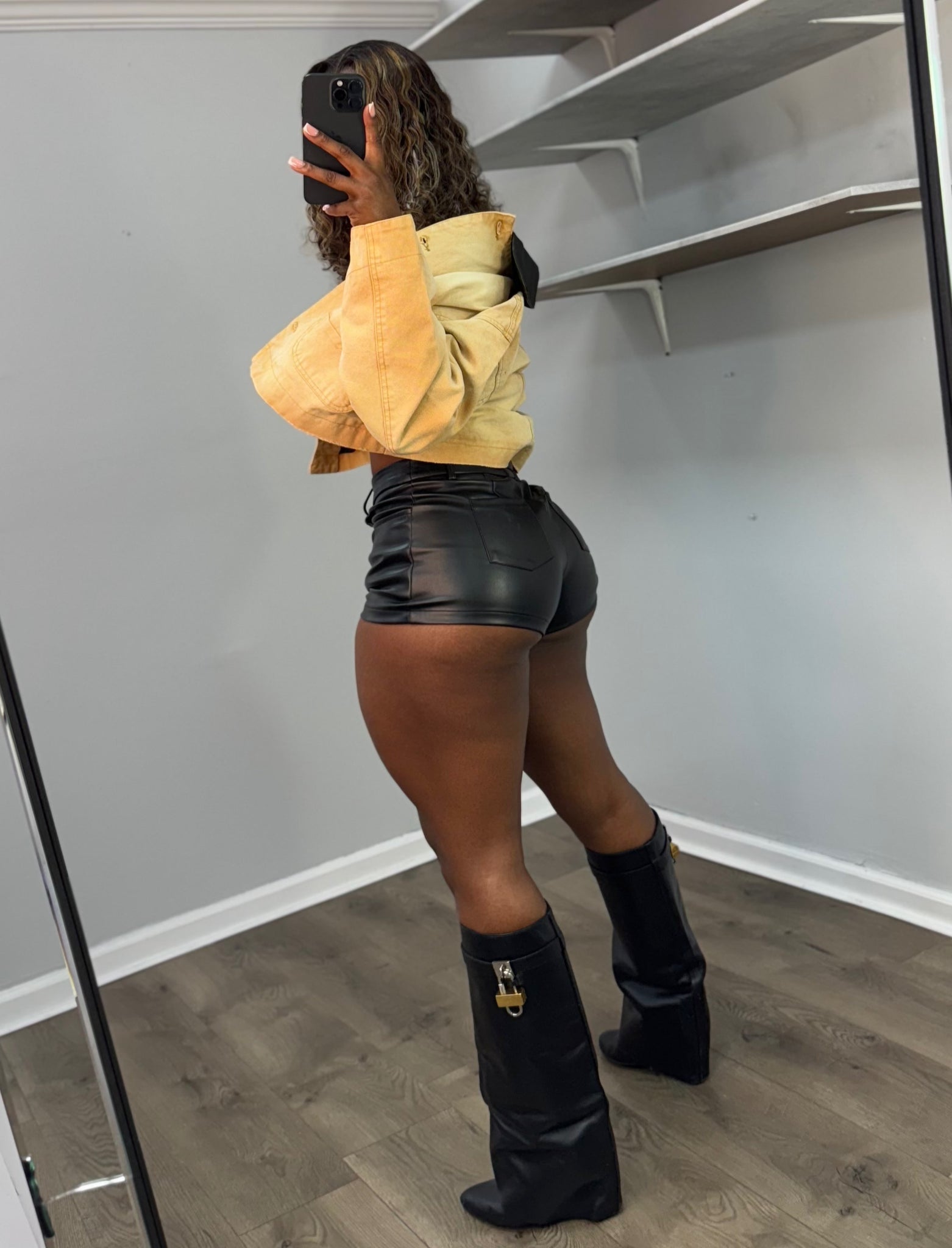 zip up leather super stretchy shorts
